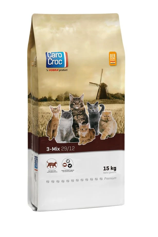 Een uitgebalanceerde voeding, licht verteerbaar en zeer smakelijk voor volwassen katten. Carocat 3-Mix is een voeding vol variatie, met kip en rund. Een bijzonder smakelijke voeding met rijst en alle voedingselementen welke Carocat 3-Mix tot een complete voeding maakt voor volwassen katten.